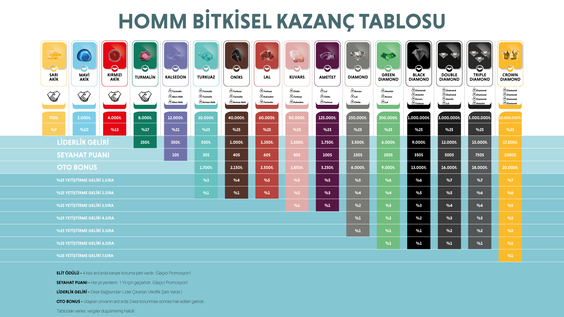Homm Bitkisel "Kazandır-Kazan" sistemi ile hem size hem de ekibinize para kazandırmanın yanı sıra; yurt içi - yurt dışı tatilleri, promosyonlar ve daha fazlası ile sizlerin ve ekibinizin başarılarını ödüllendirir.